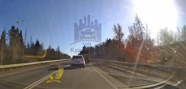 Безумный водитель на фуре и сопровождающие его лица на трассе Красноярск-Канск.