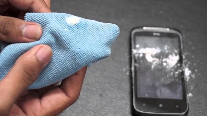 Если зубная паста не принесла желаемого эффекта, попробуйте обратиться к помощи соды или детской присыпки. Они воздействуют на экран несколько жестче, а значит позволяют устранить более глубокие царапины с поверхности. Для начала вам нужно будет приготовить смесь, состоящую из двух частей соды/присыпки и одной части воды. Когда вы соедините ингредиенты, размешайте их до однородного состояния, а затем повторите действия, описанные в пункте выше: нанесите импровизированный полироль на экран и растирайте по царапине круговыми движениями до ее полного исчезновения.