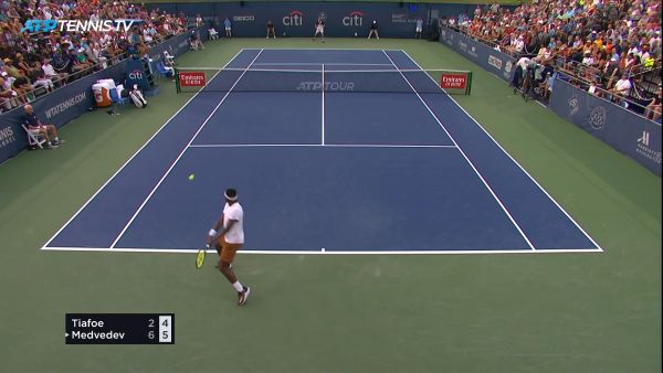Фантастический розыгрыш мяча в матче Даниила Медведева и Фрэнсиса Тиафо. Соперник Медведева уже праздновал победу, но не тут-то было.