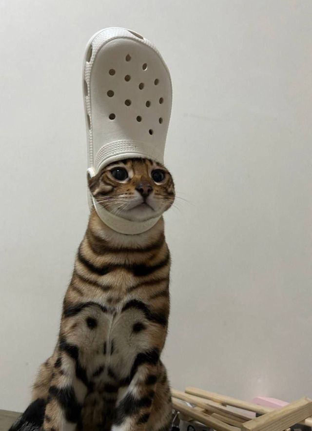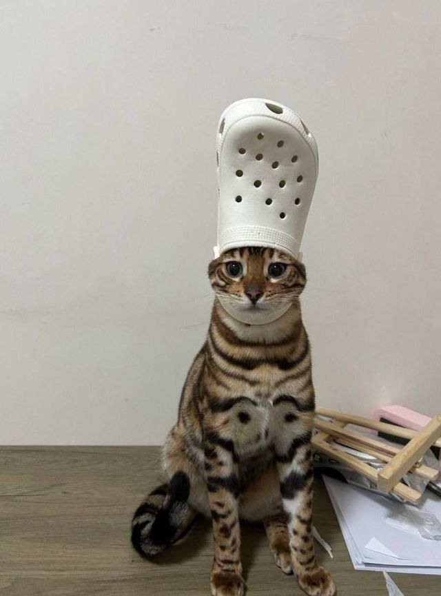 Парень пришёл домой после работы и застал… священное чудо. Его кот умудрился засунуть голову в тапок, и теперь выглядел как настоящий Папа Римский в митре — только пушистый и с усами. 🐱👑