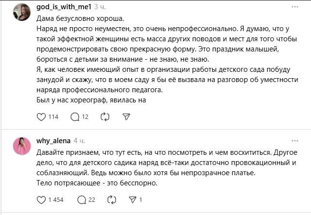 Так можно в детский сад или перебор? 07/01/2026 22:00 На утреннике в одном из детсадов папы обратили внимание на слишком эффектную воспитательницу. Фото ушло в сеть — и понеслось: одни в восторге, другие спорят, уместен ли такой образ рядом с детьми. Главная / Картинки 0 Admin 1 129