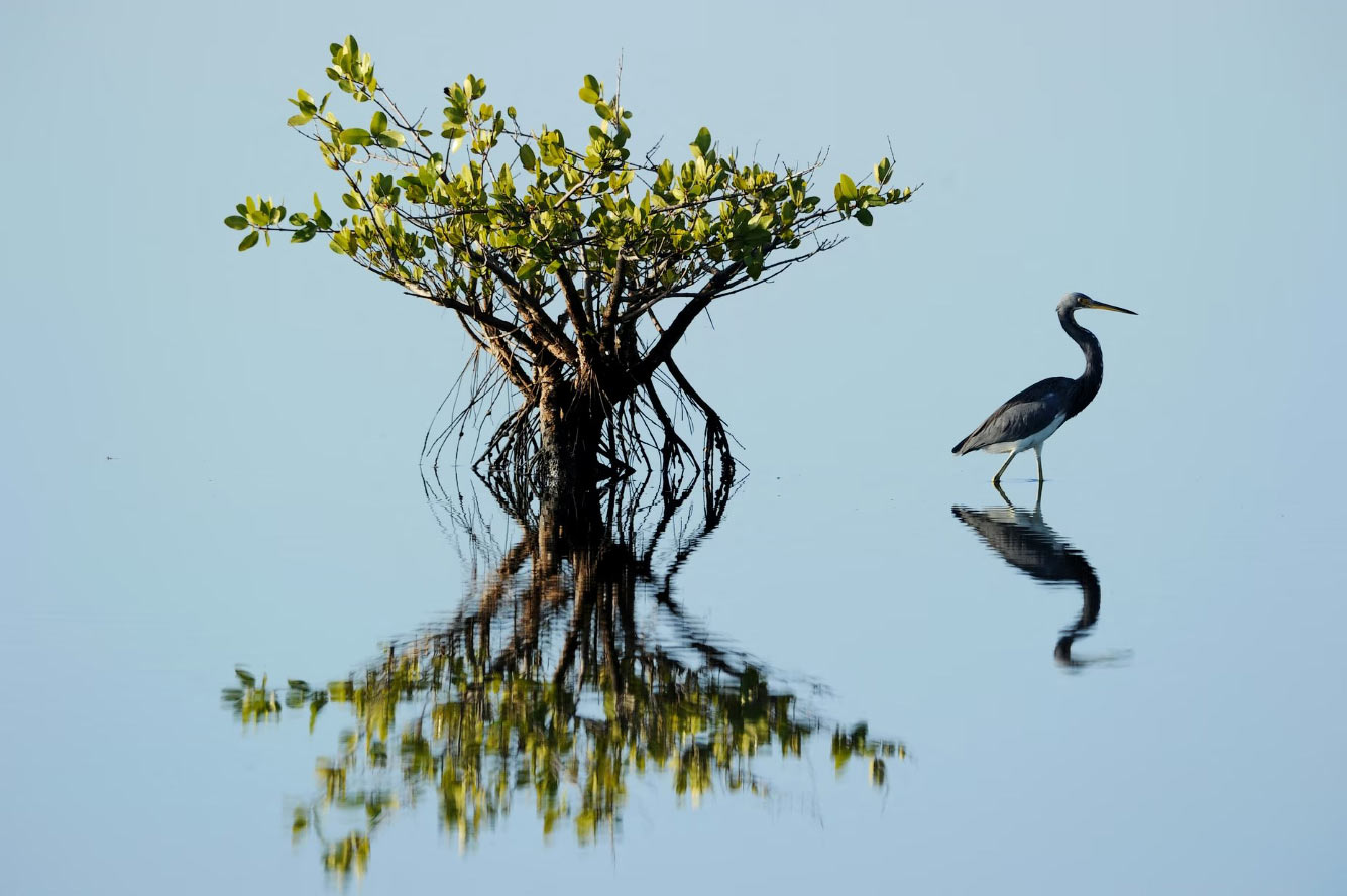 Цапля бродит по мелководью в Национальном заповеднике дикой природы острова Мерритт в Тайтусвилле, Флорида. (Фото Stan Honda):