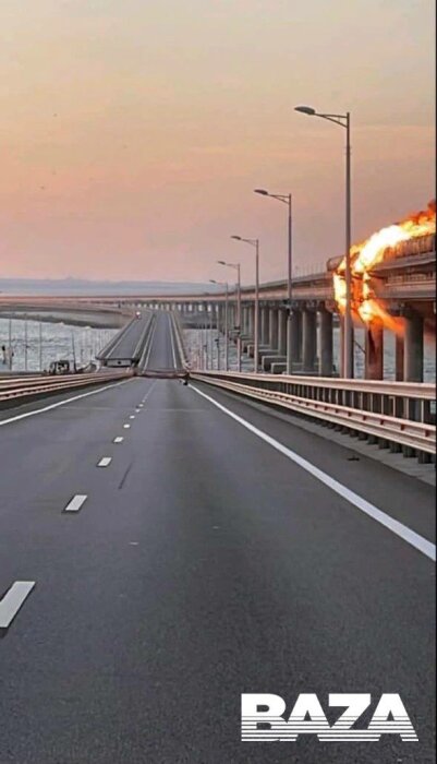 UPD3 Национальный антитеррористический комитет сообщил о подрыве грузового автомобиля на Крымском мосту. Это привело к возгоранию 7 топливных цистерн и частичному обрушению двух пролётов моста.