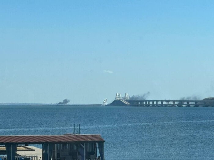 По данным «Базы», дым вокруг Крымского моста - это специальная дымовая завеса.